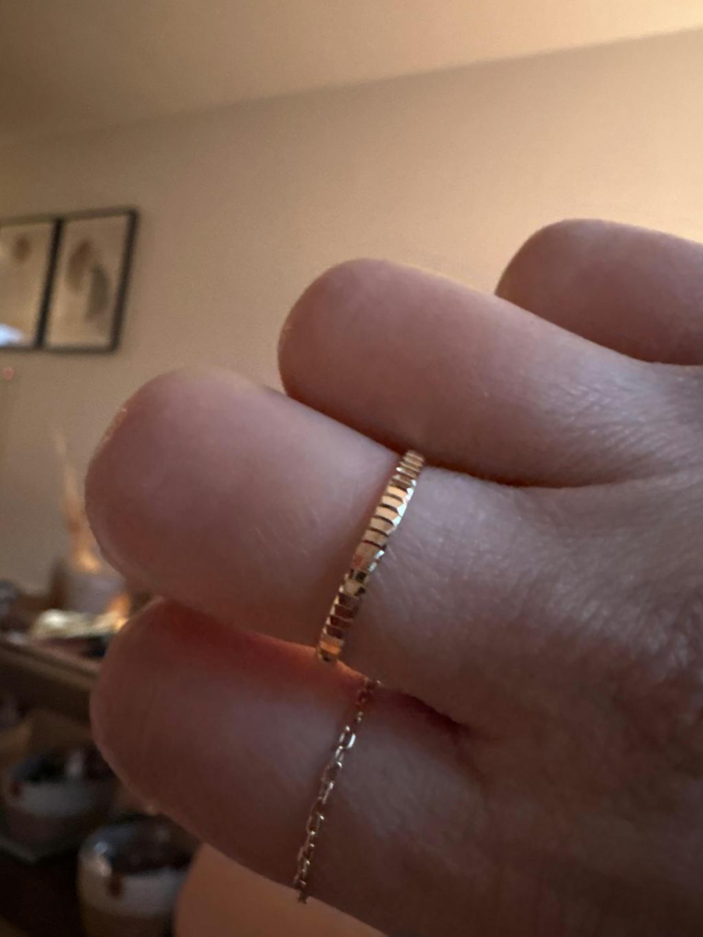Beautiful ring, exactly as pictured. Even before Christmas, it arrived the next day. Perfectly arranged, now hoping it fits.